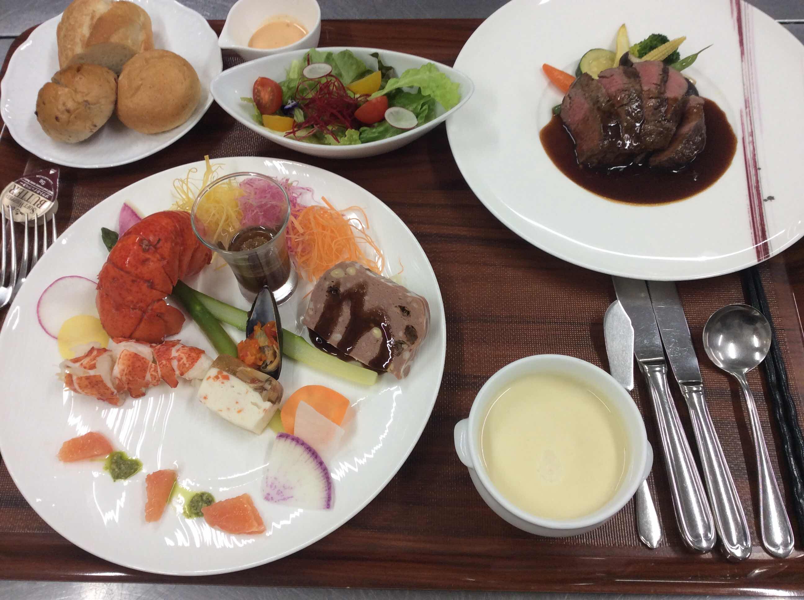 和風ローストポーク サーモンの巻繊蒸し 青菜とインゲンの胡麻…