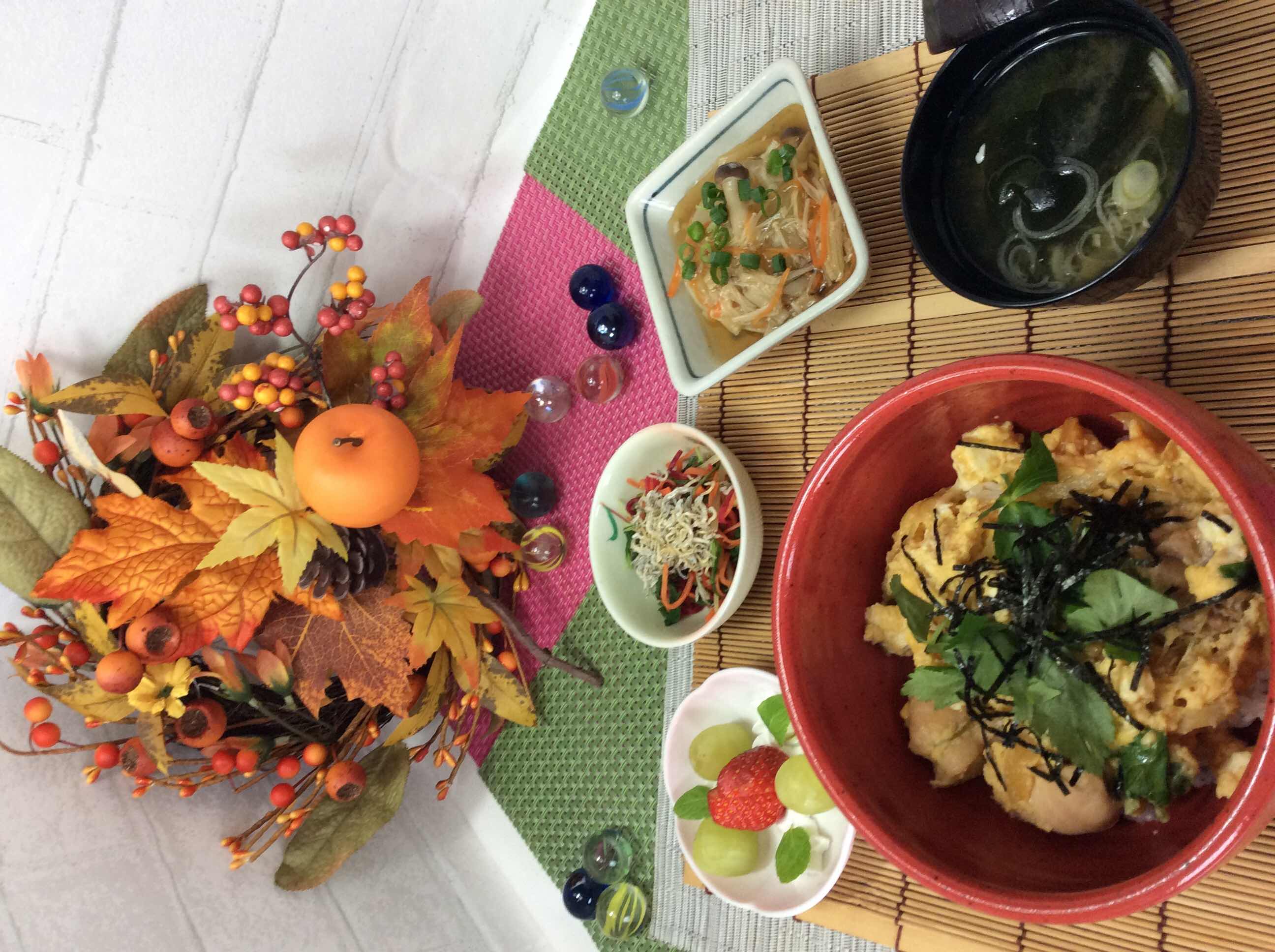 本日のお昼は、親子丼、豆腐とワカメとネギの味噌汁、大根のき…