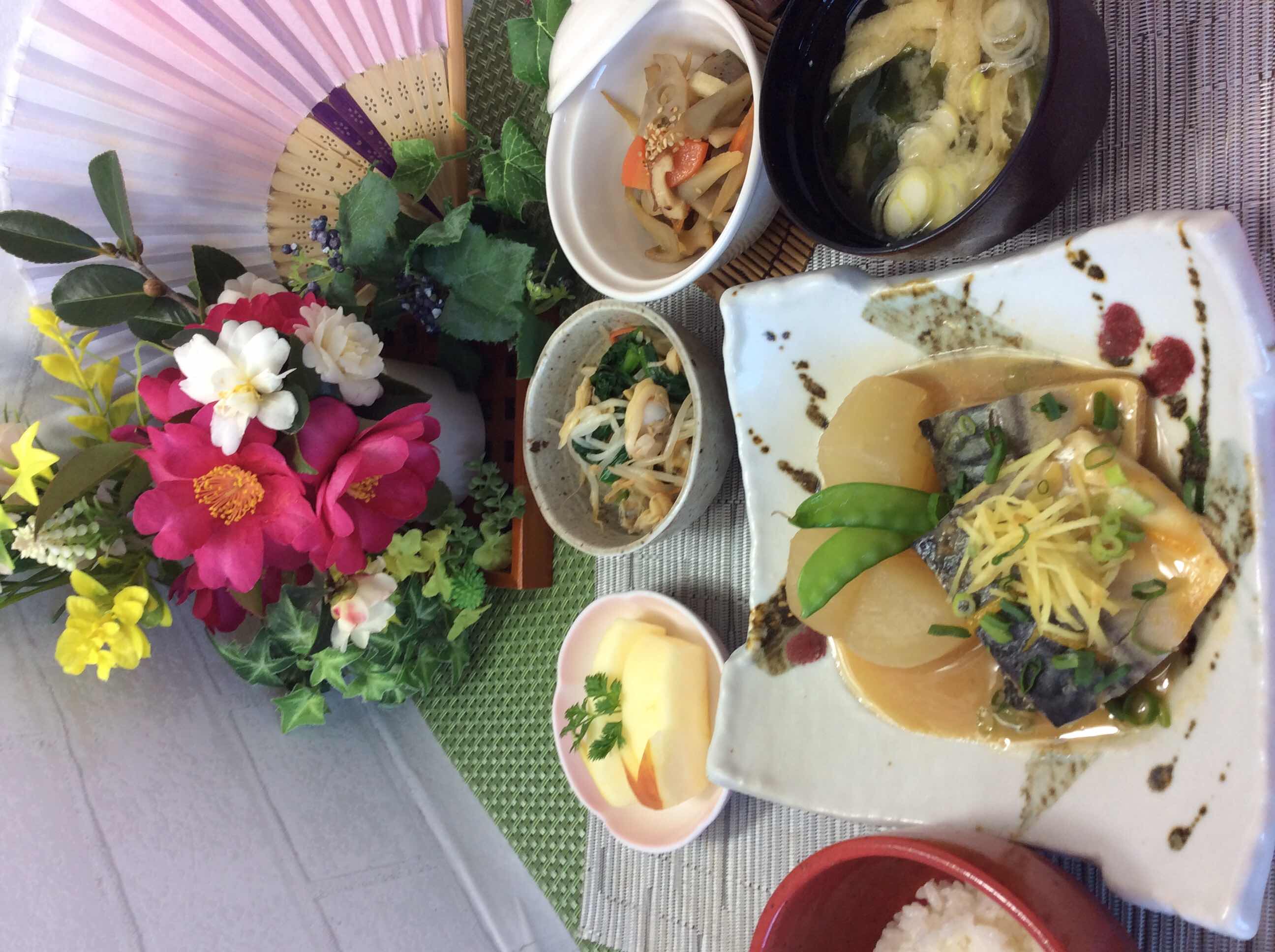 本日のお昼は、鯖の味噌煮柚子の香り、レンコンとこんにゃくの…